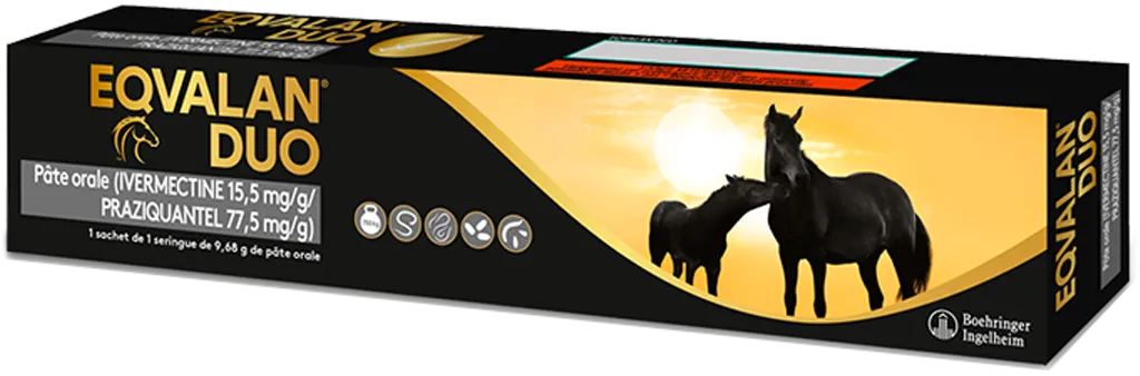 Eqvalan Duo is a powerful and convenient oral paste, presented in a syringe for easy administration. Its smooth orange formulation ensures accurate dosing and effective delivery. Combining ivermectin and praziquantel, it offers comprehensive parasite control in both adult and young horses.