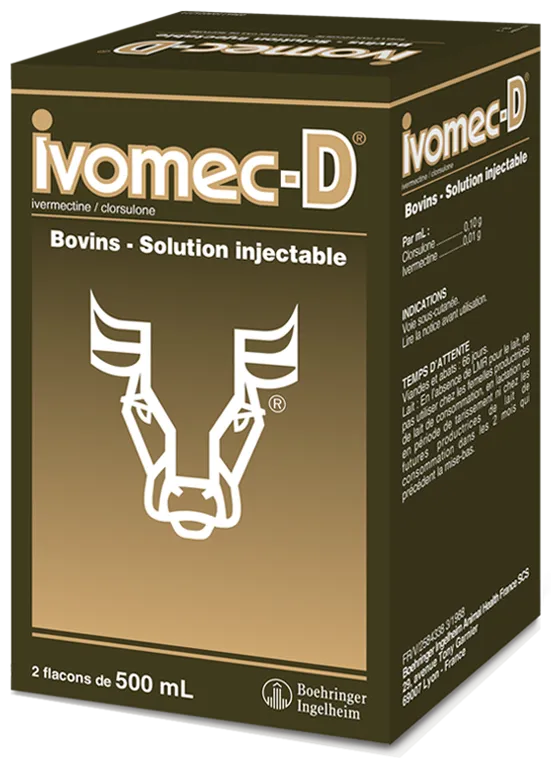 Ivomec D is an injectable solution containing ivermectin and vitamin E, indicated for the treatment and prevention of internal and external parasitic infestations in cattle. It delivers effective control against gastrointestinal nematodes, lice, mange-causing mites, and the larvae of Hypoderma bovis and Hypoderma lineatum.